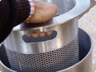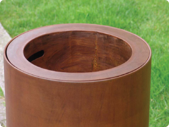 Litter Bin provided with interior reservoir. Available in stainless steel (grade 316L, satin polished), weathering steel (CORTEN) or galvanized steel.