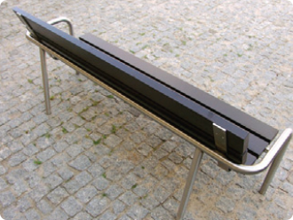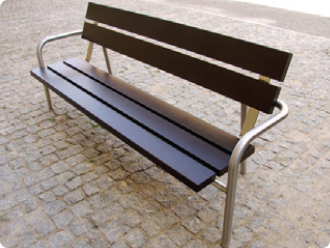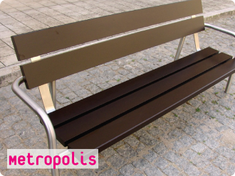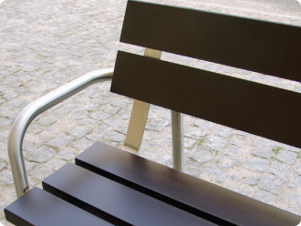 Bench made of stainless steel and tropical wood.