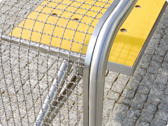 Estrutura em rede e tubo de aço inoxidável AISI 316 escovado e assento em HPL.