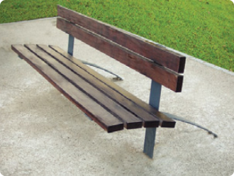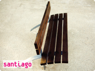 Bench made of stainless steel bar, grade 316L, satin polished and tropical wood.