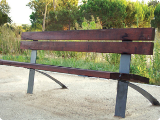 Banco construído em barra de aço inoxidável AISI 316 escovado e madeira tropical.