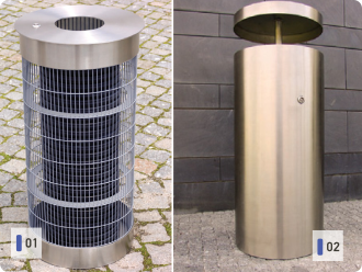 Top and bottom parts made of stainless steel, grade 316L, satin polished.Lateral part made of coated steel net.