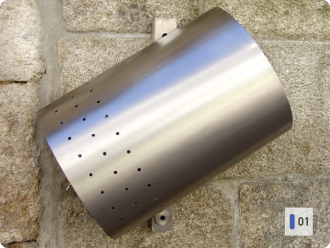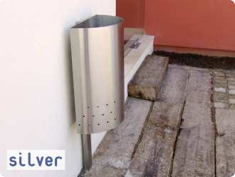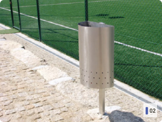 Papeleira com um pé, construída totalmente em aço inoxidável.
