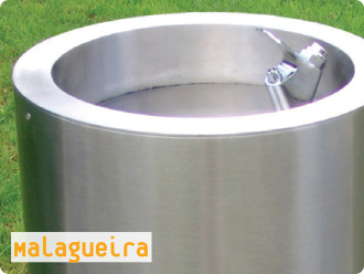 Bebedouro cilíndrico totalmente concebido em chapa de aço inoxidável AISI 316, escovado.