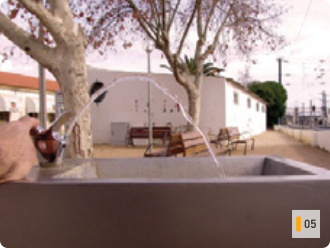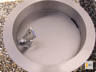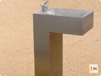 Fountain entirely made of stainless steel plate, grade 316L, satin polished.