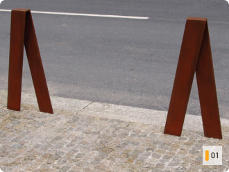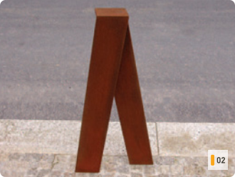 Stainless steel grade 316L, satin polished | Weathering steel (CORTEN).